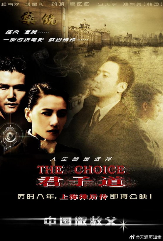 事情是这样的,2015 年,有部叫《君子道》的电影要上,IP 呢,说是《上海滩》后传。主演呢,有黎明、高圆圆,还有马天宇。