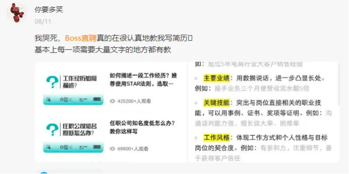 招聘者那边呢,也有人发现近两年 BOSS 直聘经常没事整个提示、整个推送,要不要发个兼职职位啊?要不要发个校招职位啊?你那个职位过期了要不要再来发一下啊?