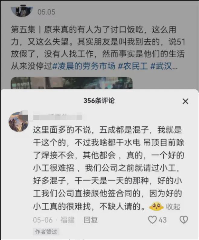 我们只是看不惯不踏实干活的人,我们也看不惯消费农民工的博主,他们都在给勤劳朴素的劳动者制造不公平。