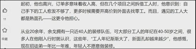 财新报道里指出:“房地产下行,建筑业‘超龄清退’一刀切,日结工挤满凌晨.4.点的零工市场等待飘忽不定的活计。”