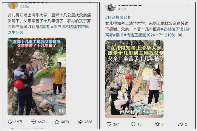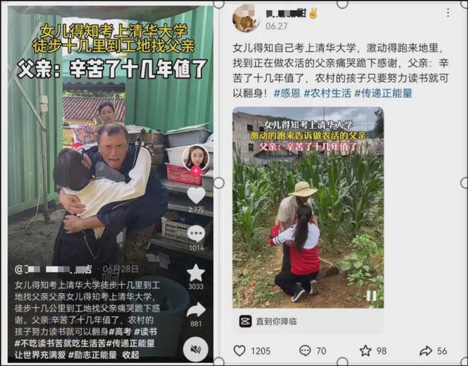 他们说女孩考上清华之后,找到工地上的父亲跪地痛苦。