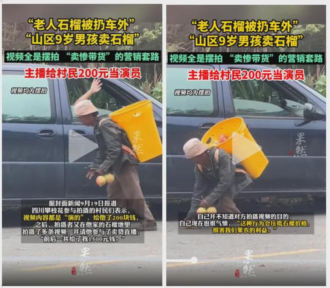 再到农民那边,卖惨剧本就更浮夸了。