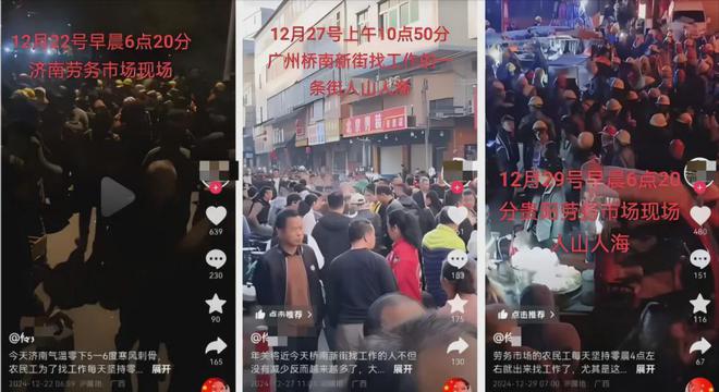 一个广西.IP.的网友,一周里频频发视频表示济南、广州、贵阳的劳务市场人山人海。