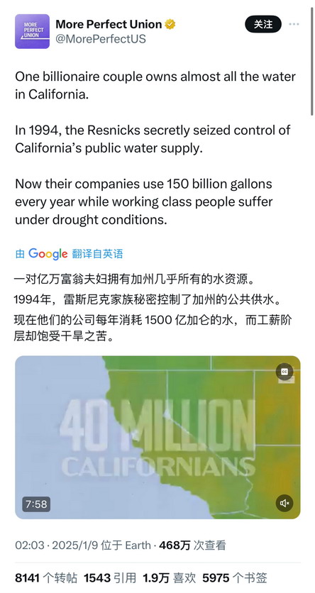 @金规泙:#美国加州山火爆发 #关于为什么 “加州消防栓里没有水” 这个问题,查了一些资料,果然这又是个资本主义垄断的故事….