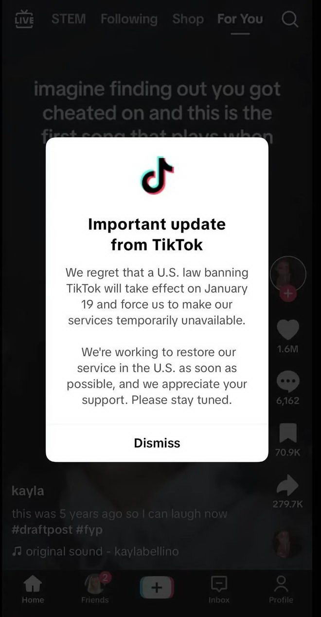 几分钟后,第二条弹窗出现,提示用户可以下载保存账号中的各项数据。没有人能预测,这一波封禁会持续多久,但官方特意提到,当选总统特朗普上任后,将和.TikTok.一起寻求解决方案,看能否恢复使用。