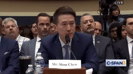 在这期间,TikTok.CEO.周受资也在各方挤压中,试图保证自己的冷静、专业。2023.年.3.月,他在美国国会听证席上坐满了.5.个小时,而不论他回答什么,对面的.52.位议员都会快速打断,要求他以.“Yes.or.No.(是或不是)”.回答。