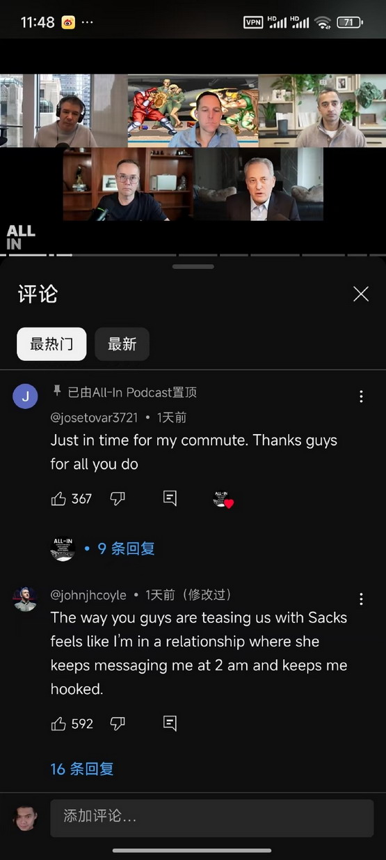 真正和中国人在公平环境下竞争过的人,比如 Uber 的创始人 TK,他最近参加了 ALlin podcast,贡献了我认为是迄今为止最精彩的一期谈论 DeepSeek 的连麦。