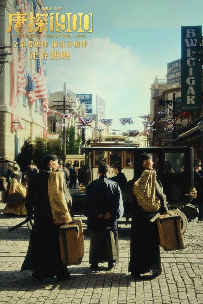 再到眼下这部《唐探.1900》,可谓情绪迎合的变种:陈思诚在展示热搜整合能力的同时,再度以轻浮姿态消费了本该严肃探讨、深入挖掘的华工血泪史与辛亥救亡史,无论是百年前的排华运动、庚子国难,还是近年作为长期热点的贸易战,都沦为创作者强化刻板印象与民粹情绪的佐料。