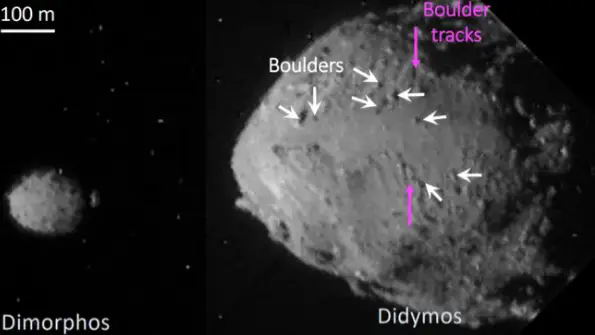 它成功击中了目标小行星,并使得它的运行轨迹发生了变化。