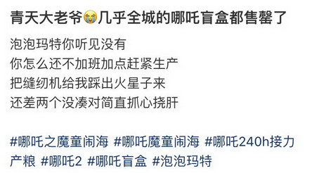 电影中的 IP 形象,也成为各个品牌争夺的对象。目前,哪吒 IP 已经和泡泡玛特、卡游、万代南梦宫等多个品牌合作,其中泡泡玛特的哪吒手办盲盒更是卖到断货。