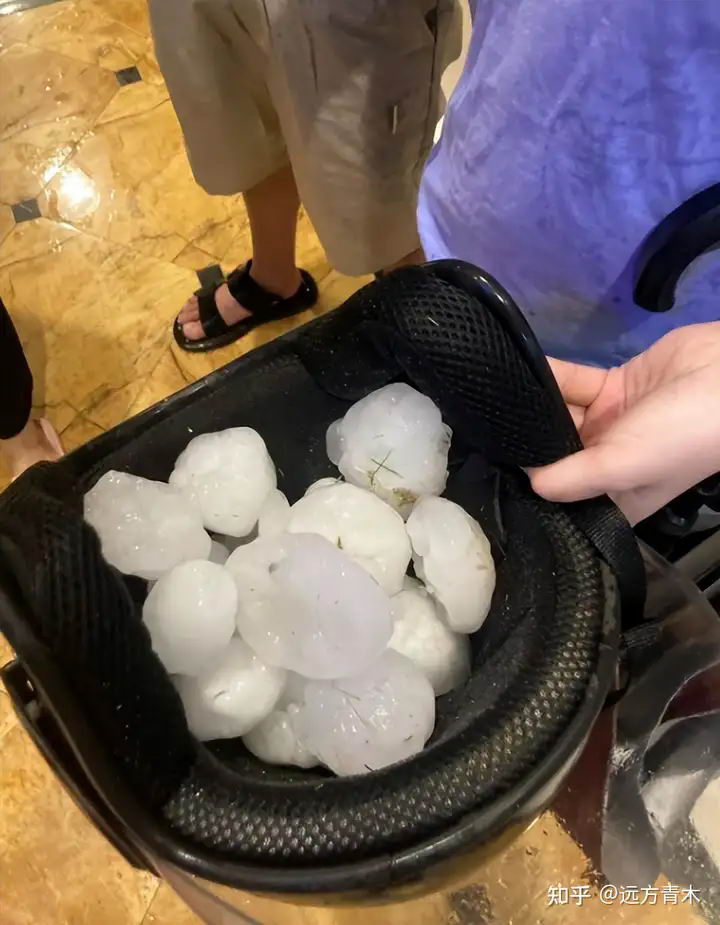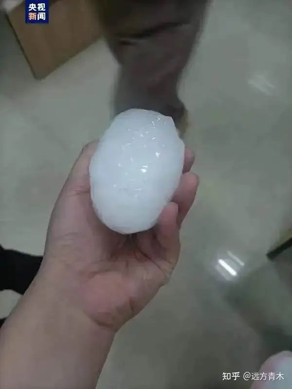 上面这个冰雹直径大约有人类手掌这么大,直接从高空砸向广州市。