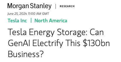 2024 年全年,特斯拉储能业务营收更是达到 100.86 亿美元,同比增长 67% 。摩根士丹利甚至预测,到 2030 年特斯拉光储能就能赚到 39.5 亿美元的税后净利润,?并给了特斯拉能源板块 1300 亿美元的估值。