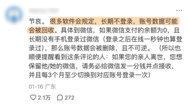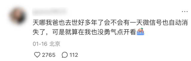 在开头那篇帖子的评论区,就能看到无数网友在担心过世亲人的账号,不希望这个羁绊断掉。