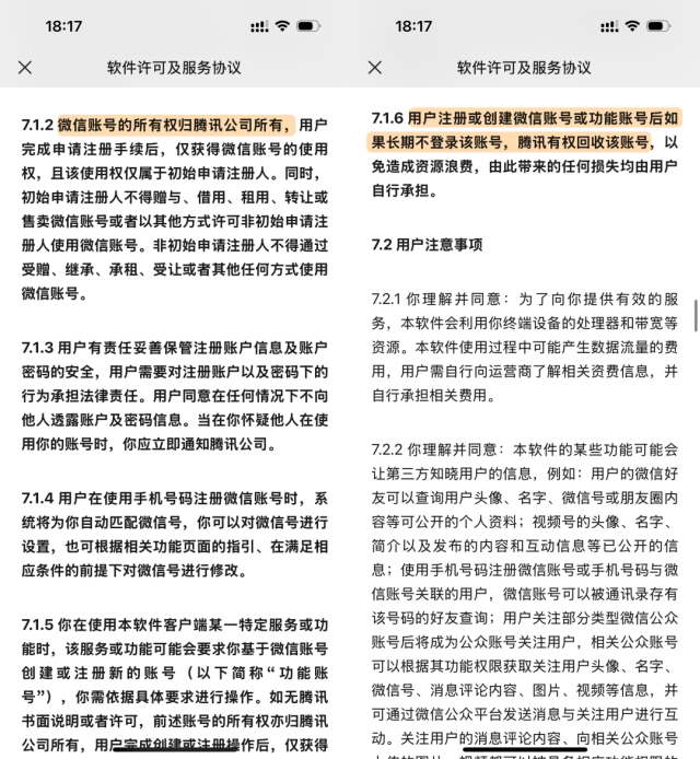 答案早在微信的《 软件许可及服务协议 》第 7 条写着: