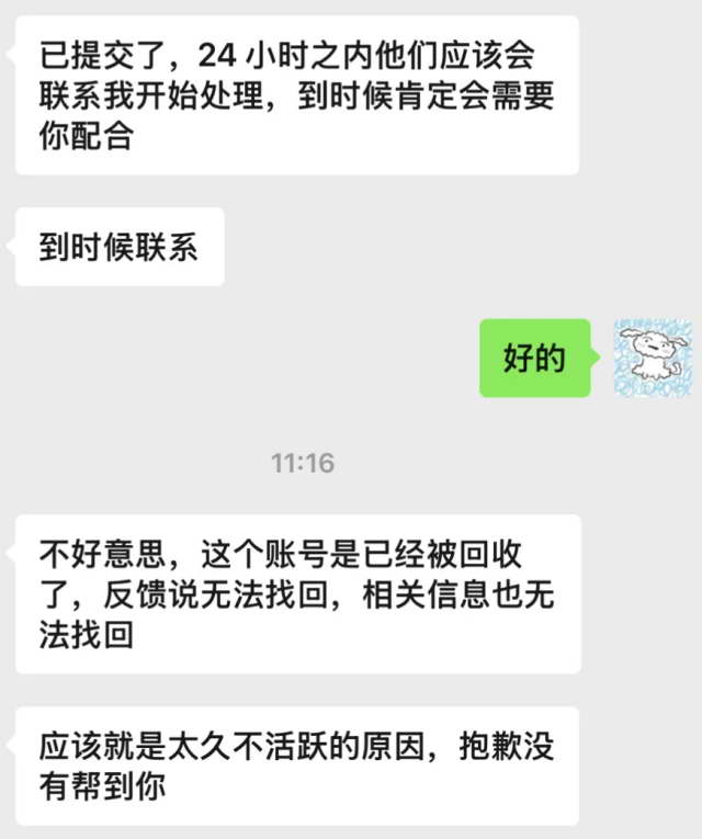 那天微信工作人员也看到这篇帖子了,他们主动联系上网友,看看能否再找回微信。