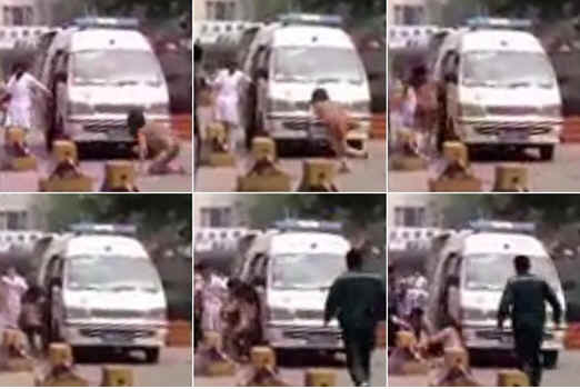 脱衣躺地上阻挡救护车