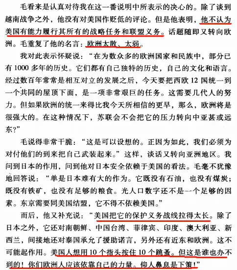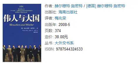 统一回复一下,出自前西德总理赫尔穆特·施密特的回忆录《伟人与大国》,这是他1975年访问中国时的回忆部分。