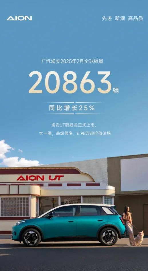 广汽埃安宣布,其 2 月交付量为 20863 台,同比增长 25%。此外,埃安一月销量为 14394 台,可见环比也有 44.95% 的增长,相当可观。
