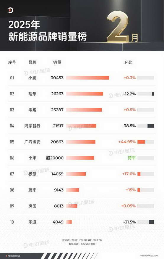 小鹏站稳 3 万、零跑大涨 285%、小米守住 2 万关口,新的格局已经出现?