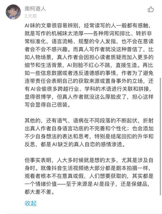 比如有些时政类自媒体已经拿 DeepSeek 去写涉军涉政的东西了,同时因为推理模型在具体的案例细节上非常容易绘声绘色的胡编乱造,以致于这些内容往往具有独家性,然后引起特别广泛的转载,甚至我关注的大 V 博主里都有不少上当的。