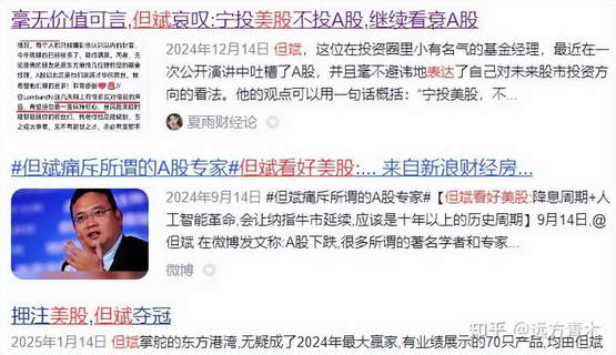去年底的时候,但斌是这么说的,因为他2024年靠投资美股赚了不少钱。