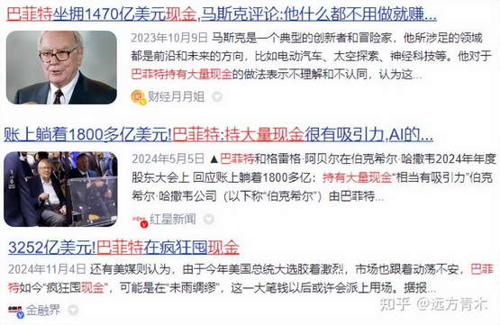2024年11月,美股还涨,巴菲特囤积了3252亿美元现金。