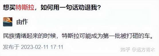 至于大规模打砸烧特斯拉这件事,有公知前几年说等中国民族情绪起来的时候,第一个打砸的就是特斯拉汽车。