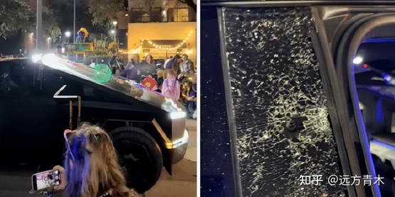 下面这辆被砸的汽车,属于德克萨斯州的CyberTruck车主,在路上莫名其妙就被当成了攻击目标,其过程被全球直播。