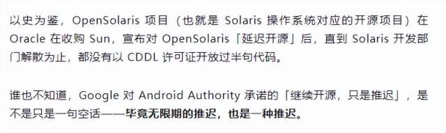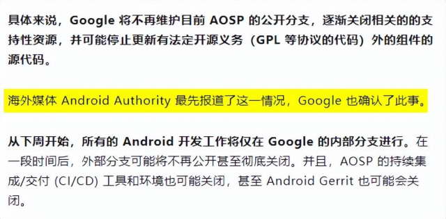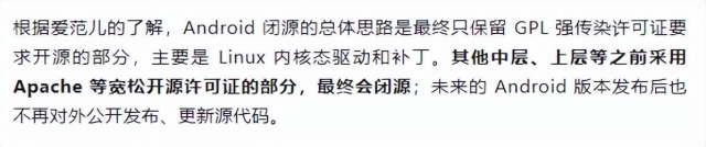 第二点则是,他们自称拿到了绝对独家内部的爆料, “谷歌的高层已经决定了,就是要彻底闭源安卓” 。