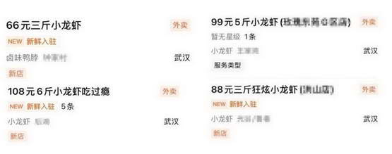 包括一些主做外卖的小龙虾门店,卖点也是低价。以小龙虾聚集地武汉为例,在大众点评上搜索 “小龙虾”,会出现一大批门店,这些门店会直接将价格打在门店的门头、招牌上。