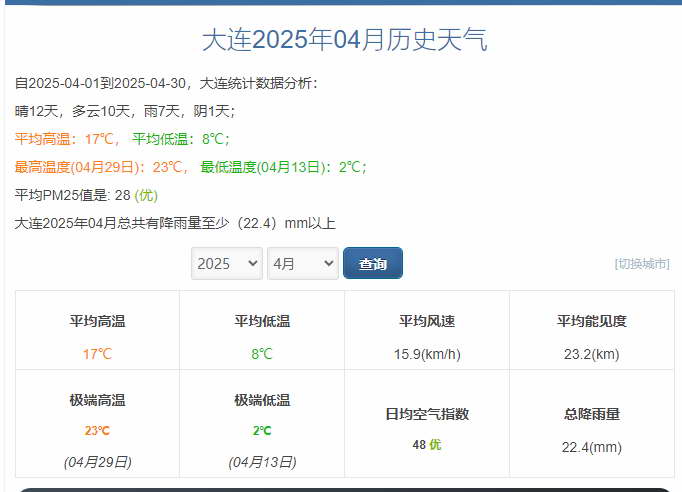 四月份甚至还有 2°C 的低温天气,平均低温也就 8°C 左右。