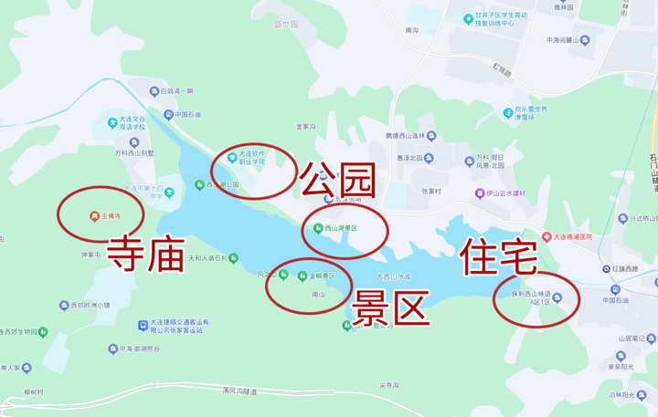 我们再看下事发地区的的地图,附近有寺庙,景区,公园,住宅。
