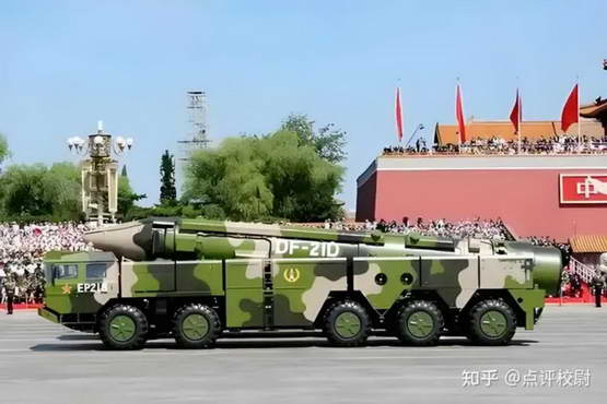 东风21机动+固体燃料+小型化核弹,就是装在卡车上四处跑,对手无法侦查定位,自然也就没法提前打击了。固体燃料就是随时可以停下来,竖起导弹就能发射,省掉了注入液体燃料的步骤。