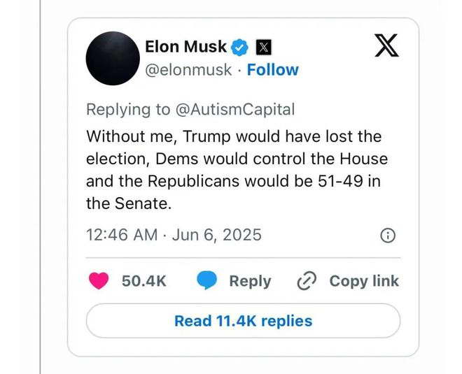 媒体离间特朗普和马斯克,说马斯克才是真总统。