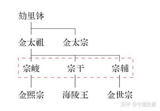 金国开国皇帝阿骨打,他这个情况有点儿特殊,他是把皇位传给了弟弟吴乞买,兄终弟及,但吴乞买又把皇位传回了阿骨打一脉(比赵光义靠谱),其实他是想把皇位给自己的儿子,但遭到了宗室、大臣的集体反对,所以不得不放弃自己的想法。吴乞买死在 1135 年正月,天会十三年,但阿骨打的嫡长子完颜宗峻死在天会二年,所以继承皇位的是宗峻的儿子完颜亶,也就是金熙宗。