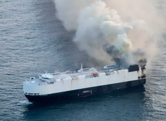 前些天,一艘叫做 “Morning Midas” 的车辆运输船,在太平洋上突然起火。这艘船之前在国内的广州南沙、上海停靠过,然后是?5 月 26 日从烟台港出发,前往墨西哥的拉扎罗?卡德纳斯港。