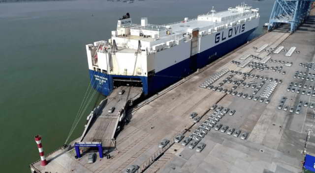 我们常见的货船是那种集装箱货轮,一个箱子一个箱子叠起来,这种船拿来装货可以,拿来装车就不够高效。对运车这种需求,是用专门的滚装船。