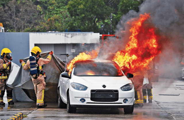 根据消防部门的统计,一辆油车起火,大概能在半小时内,用 10 吨水浇灭,而一辆电车起火,可能需要 100 多吨水,并且需要 4 个小时才能浇灭。