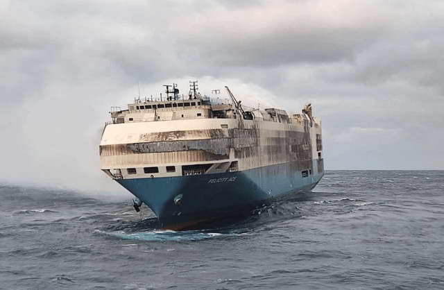 在 22 年 2 月份,从德国开往美国的 “Felicity Ace” 号货轮,在大西洋上起火。这艘船基本被大众承包,里头有 3965 辆大众集团的车,包括大众、奥迪品牌,和保时捷、宾利、兰博基尼这些超豪华品牌。