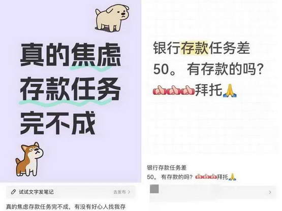 考核压力之下,近期社交媒体上涌现出大量 “月末求存款” 的帖子,不少银行员工为了拉存款不惜自掏腰包来 “贴息”。