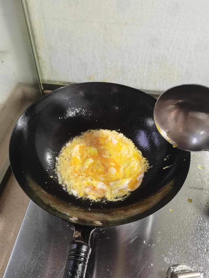 常规炒法:先炒蛋,再炒饭。