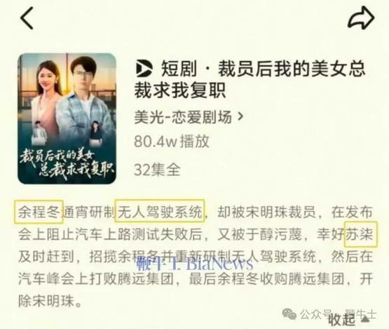 近日,一部名为《被裁员后女总裁上司后悔了》的短剧正在热映。因其剧情、角色名称与小米业务、华为高管名字相似,引发大量关注。