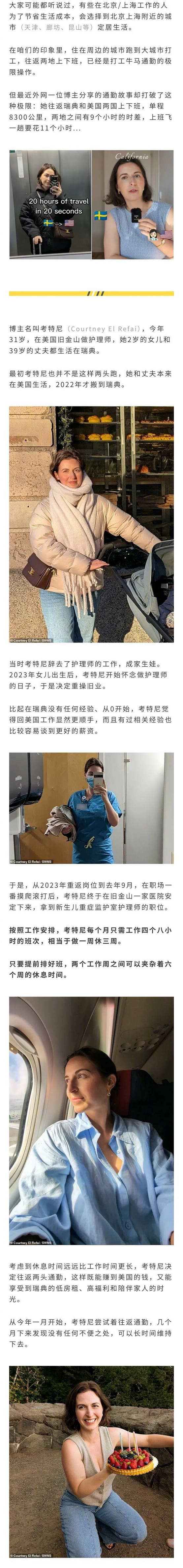 美女护士往返美国瑞典极限通勤 11 小时,时薪 800 多
