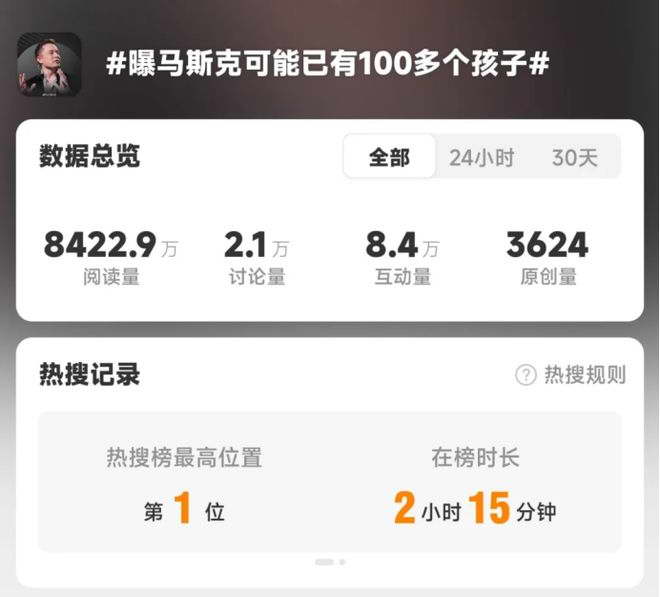此前曾有爆料称,马斯克可能已经有 100 多个孩子。