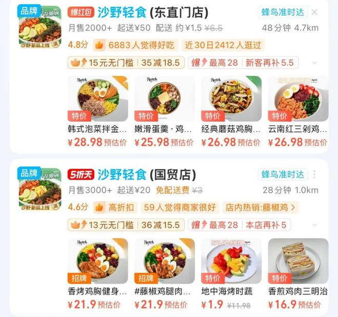 ▲沙野轻食部分门店在饿了么平台的销量。图 / 外卖软件截图