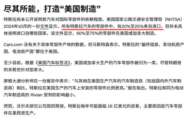 所以在纸面上,美产特斯拉的 “国产化率” 也不低。