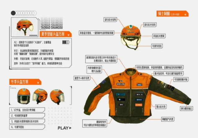 据说,还有配套的智能头盔,能够感应光线变化自动打开头盔尾灯,通过里面搭载的九轴智能传感器,实现 “佩戴检测”“防撞检测”,大幅提高骑手送餐安全。