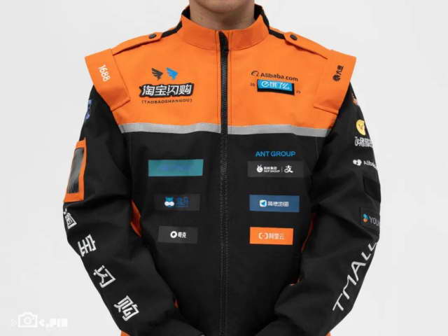第一眼看过去,利落的剪裁、酷炫的配色、满身的 “赞助商” Logo,我已经有点分不清,这是淘宝闪购外卖小哥还是迈凯伦车队了。