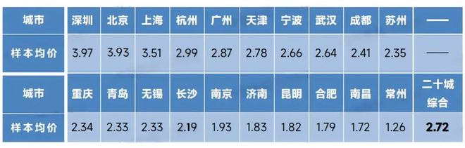 而今,这些城市的物业价格都降到平均线以下,南京、昆明、南昌、常州等城市的均价已然是 1 打头