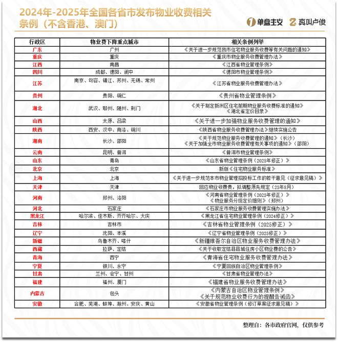 从 2024 年开始,32 个省、自治区(不含港澳台),几乎都出了关于规范物业费收取相关文件和条例